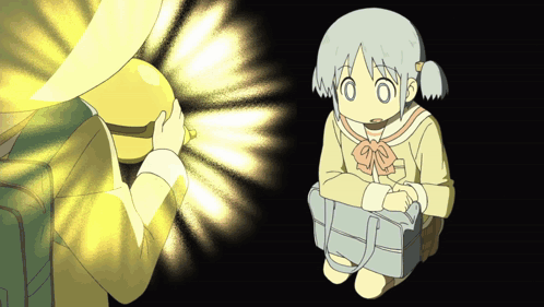 Mio Naganohara and Yoshino Naganohara bow down to a 1000 Yen bill in this anime scene.