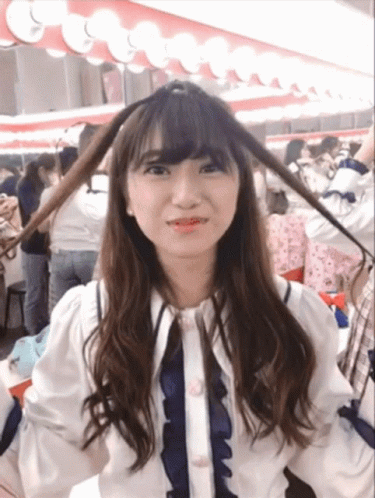 Miori BNK48 laughing joyfully with a unique, playful hairstyle, showcasing her cute personality.