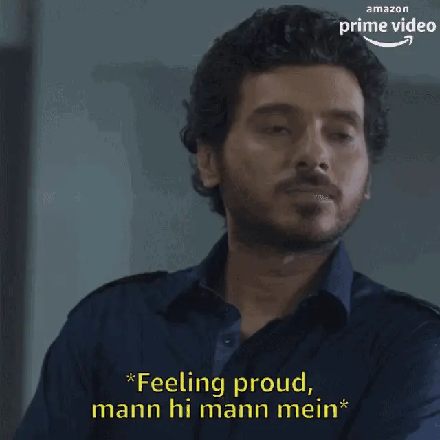 Pankaj Tripathi as Kaleen Bhaiya from Mirzapur looks down with a somber, guilty expression, with text reading "Guilty feels."