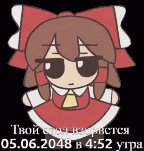 Animated character Миша delivers an ominous message: 'Your table will explode 05.06.2048 at 4:52 AM'.