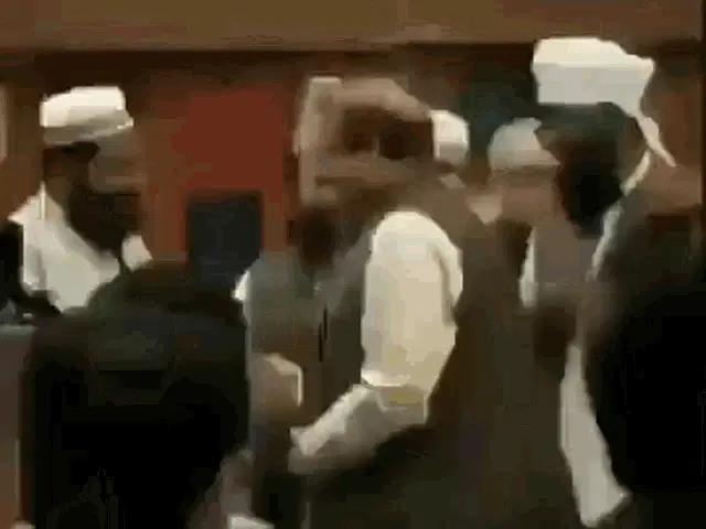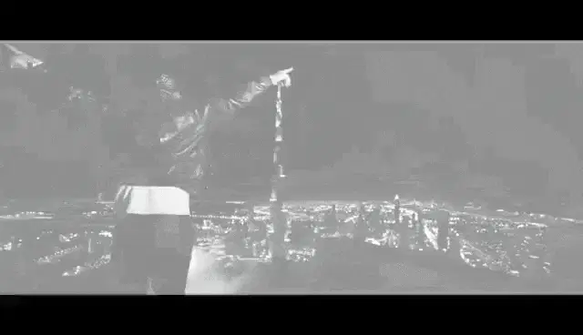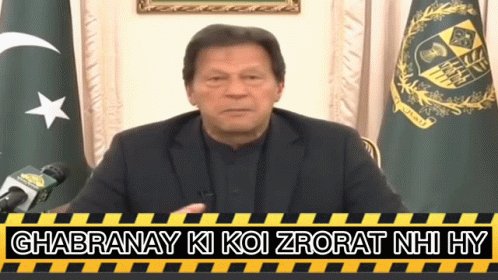 Imran Khan delivers his famous 'Ghabranay Ki Koi Zrorat Nahi Hy' message, standing before microphones.