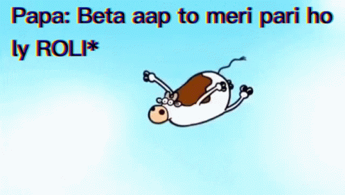 A cartoon cow flies through the sky, illustrating the 'Papa ki pari' (Dad's fairy) theme, featuring Mishtersami Roli.