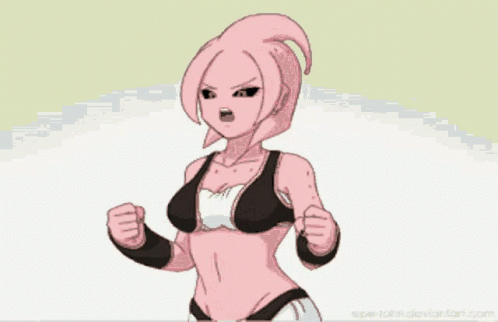 Miss Buu from Dragon Ball transforms from angry to happy after receiving a sweet lollipop.