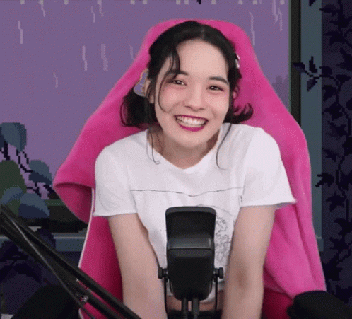 Miss Skill Shots, looking adorable, waves hello to the camera from her pink gaming chair with a bright smile.