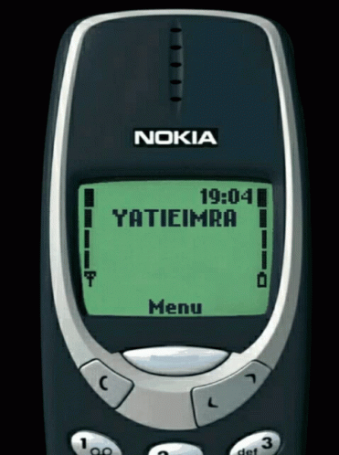 A classic Nokia phone displays a playful SMS conversation, featuring miss call messages and Yatieimra.