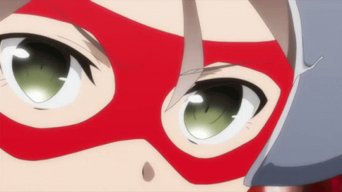 Miyoshi Karin transforms into Nibosshi Kamen, striking a heroic pose with her red mask and moth-like wings.