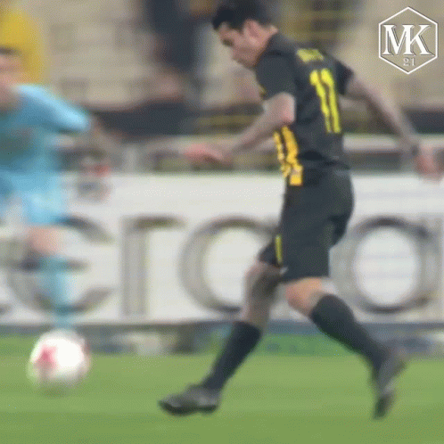Sergio Araujo scores a spectacular goal for AEK, wearing jersey number 11 during a football match.