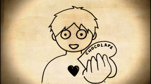 Animated drawing of a boy holding a heart-shaped chocolate, receiving a 'Tnx Friend' message, implying friend zone.