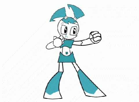 Jenny XJ9 from My Life as a Teenage Robot in a dynamic fighting pose, punching forward.