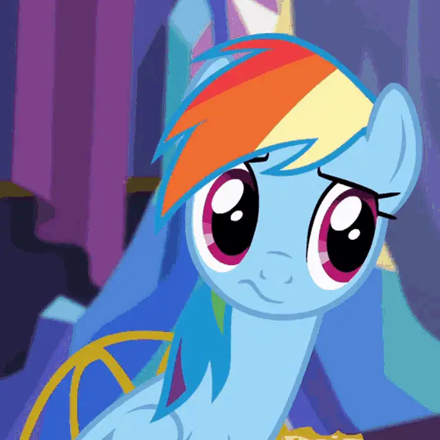 Pinkie Pie from My Little Pony shows a rapid change from happy and excited to sad and teary-eyed.