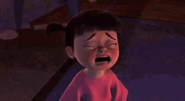 Man in a suit making a pained or crying expression in an office setting, with another man partially visible.