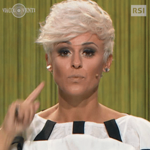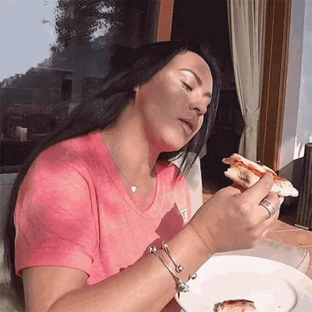 Clarissa Tami makes a delightful 'mmm' expression, pointing to her cheek on Via Col Venti.