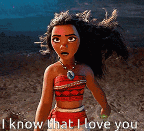 Moana expresses her feelings with the heartfelt declaration, 'I know that I love you.'