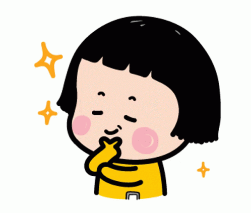 Mobile Girl Mim, a cute cartoon character, reacts with a shy smile, covering her mouth.