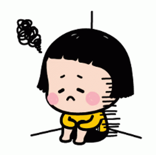 Mobile Girl Mim Ciqarest, a cartoon character, sits sadly in a corner with a thought bubble indicating distress.