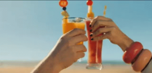 Mocatriz360 enjoying summer cocktails and toasting on a sunny beach.