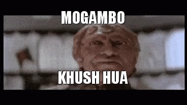 Mogambo, the iconic villain from 'Mr. India', says 'Mogambo Khush Hua' in this classic meme clip.