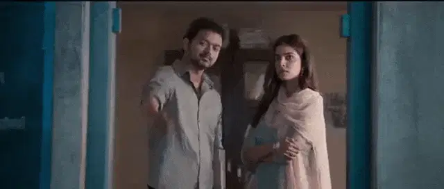 Mohanan Thacholi dances energetically in a street crowd, wearing sunglasses and a tank top.