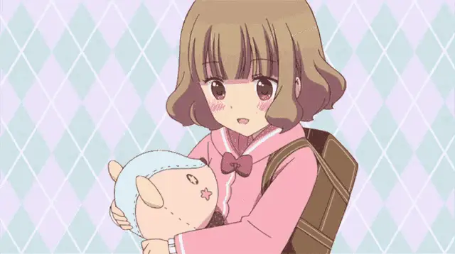 Yuki Kurihara playfully pushes away another girl's hands while kneeling in a room from the anime Momokuri.