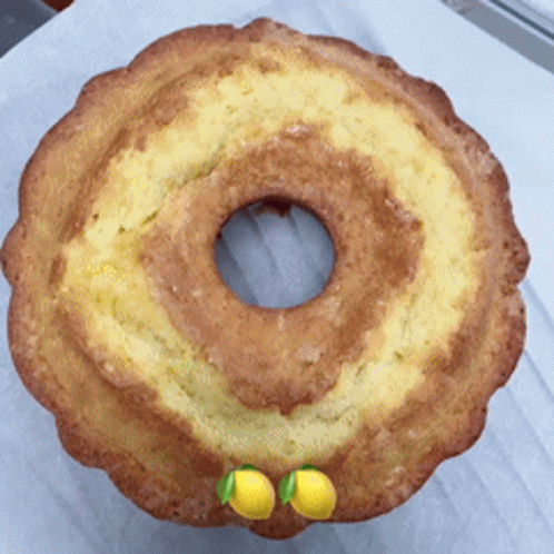 A delicious lemon bundt cake, perfect for coping with the Monday blues, featuring two lemon emojis.