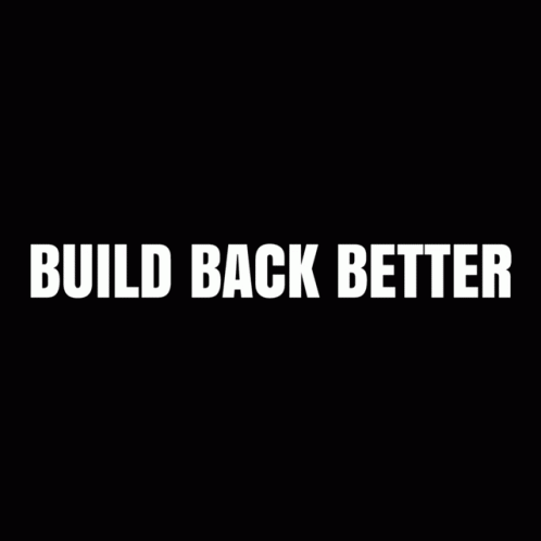 Animated text 'BUILD BACK BETTER' highlighting President Biden's economic and infrastructure plan.