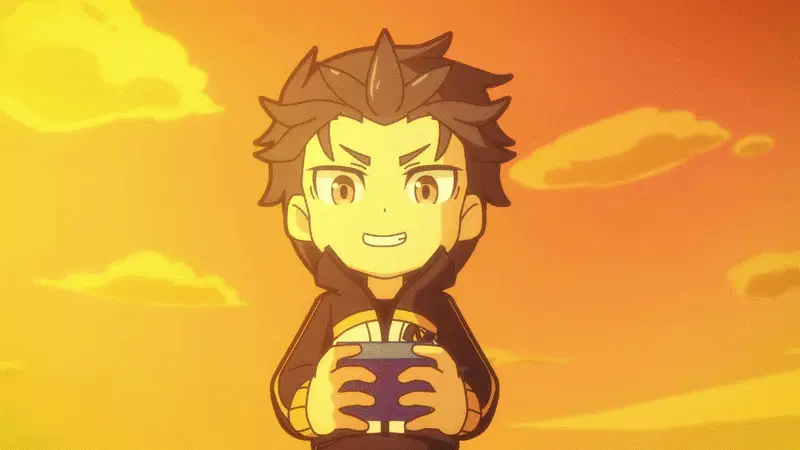 Subaru Natsuki from Re:Zero with a purple aura and the caption 'I sent you monkey' in a dramatic scene.