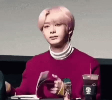 Monsta X's Hyungwon points, makes a cute gesture, and blows an adorable kiss to the camera.