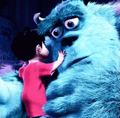 Boo hugs Sully from Monsters Inc. as he offers comfort and support, with the text "I'm here".