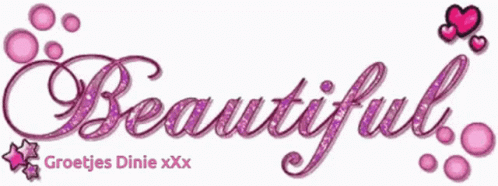 The Dutch phrase 'Mooi Dinie' (Beautiful Dinie) displayed in stylized purple and pink text.
