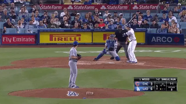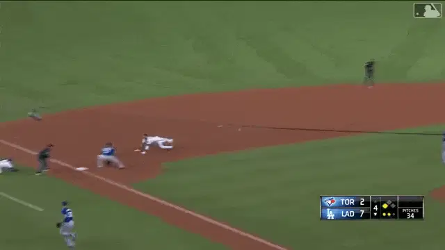 Mookie Betts, a Dodgers baseball player, adjusts his helmet during a game.