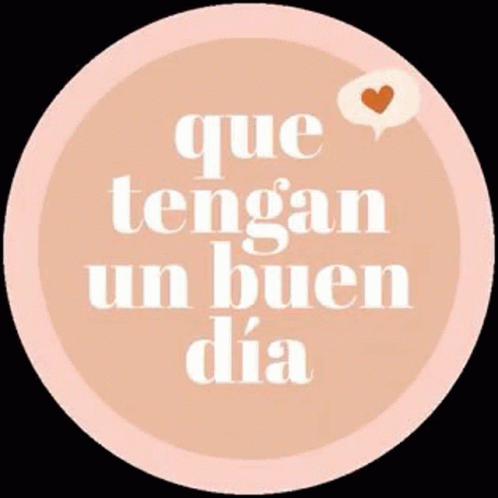 A cheerful pink circle graphic with the Spanish greeting 'Que tengan un buen día' and a heart.