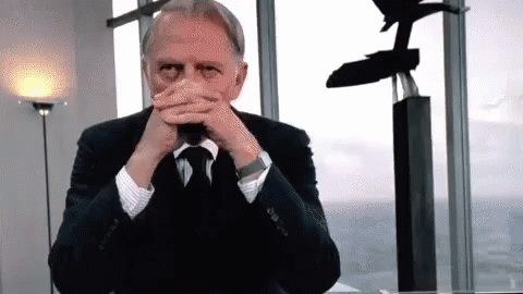 An older man in a suit sits in an office, covering his face in exasperation, with the text 'Morons everywhere...' displayed.