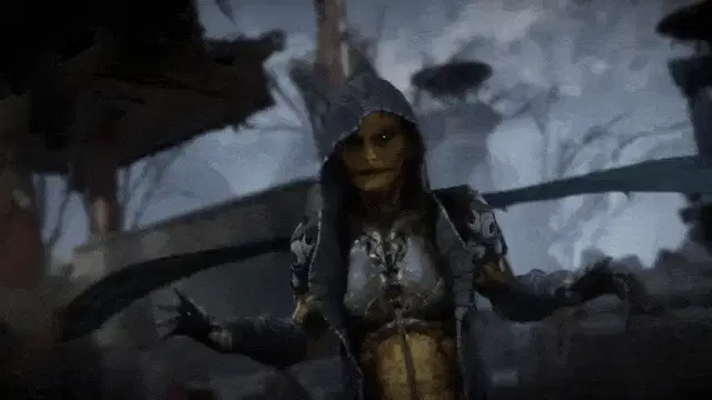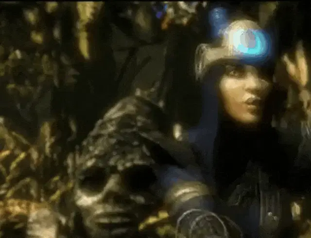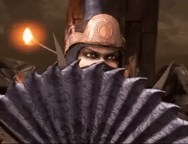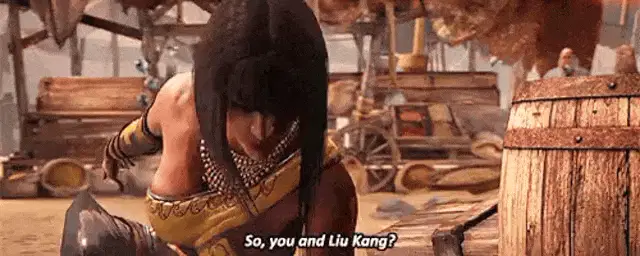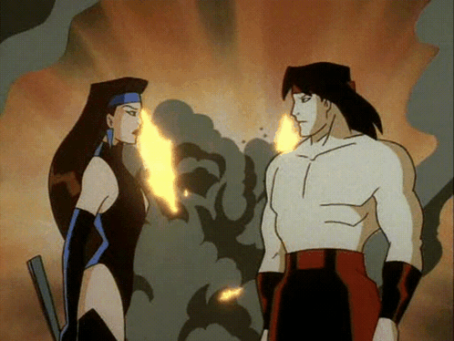 Mortal Kombat characters Kitana and Liu Kang (Liutana) stand together with fire effects from their faces.