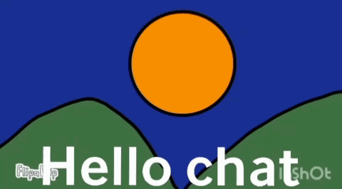 Moseidon Buffalo presents a simple animation with a sun, green hills, and 'Hello chat' text.