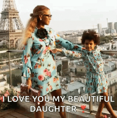 Beyoncé and Blue Ivy Carter share a loving mother-daughter moment in Paris, with the Eiffel Tower in the background.