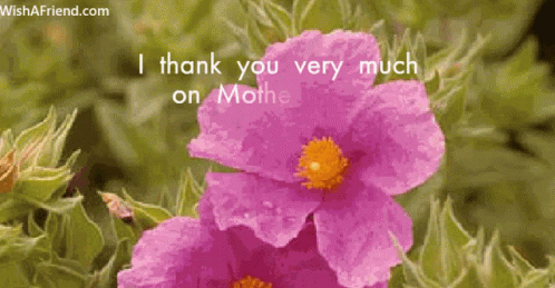 a pink flower with the words " i thank you very much on mother 's " on it