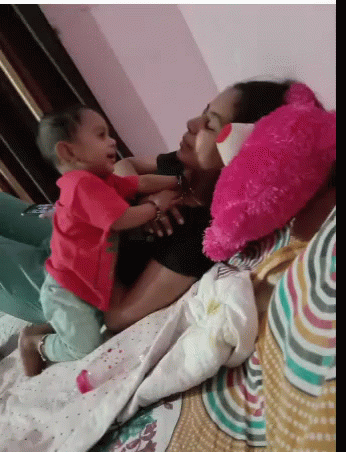 Mother and son sharing sweet bonding moments, with the baby smiling and interacting with the mother.