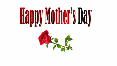 A heartfelt 'Happy Mother's Day' greeting displayed with an animating red rose on a clean white background.