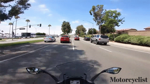 Experience a first-person motorcycle ride on a sunny day, as seen in Motorcyclist Magazine.