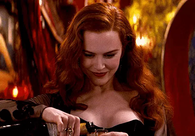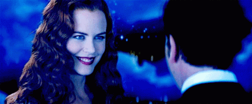 Nicole Kidman and Ewan McGregor share a captivating gaze in a scene from Moulin Rouge.
