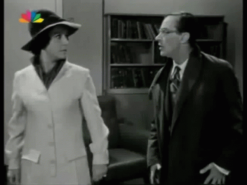A man and a woman in a black and white scene, with the woman performing the traditional Greek 'moutza' gesture.