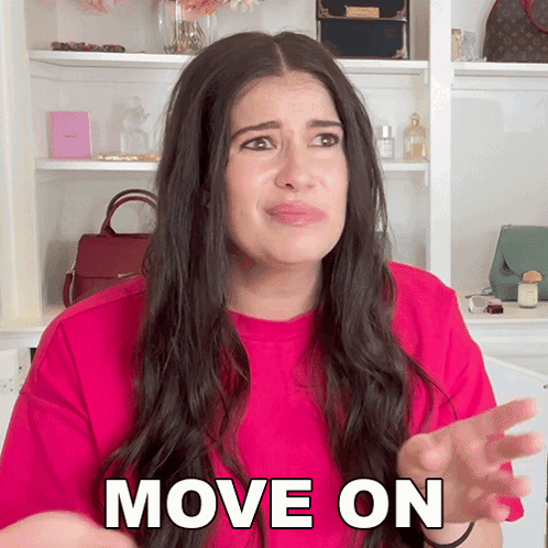 Marissa Rachel passionately encourages viewers to 'MOVE ON' with expressive gestures and a clear message.