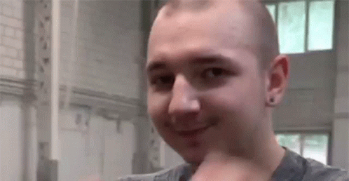 AntonLAVLazarev, a young man with a shaved head, smiles at the camera while gesturing about brains.