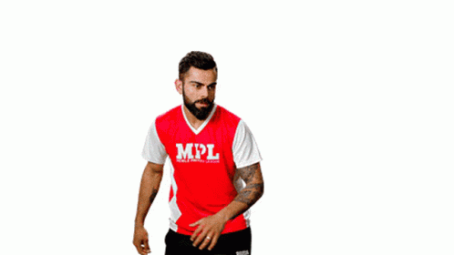 Virat Kohli, in an MPL jersey, demonstrates his football skills by kicking a ball.