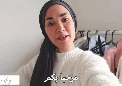 Fatima, from Inline With Tima, welcomes viewers while wearing a white sweater and dark hijab.