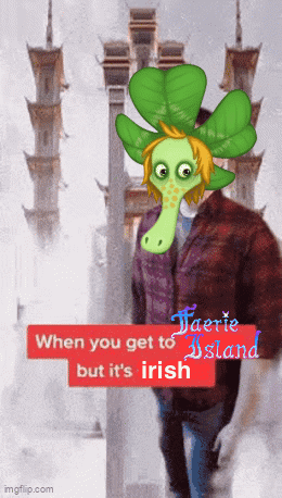 A My Singing Monsters Faerie Island meme featuring Ffidyll and an Irish theme.