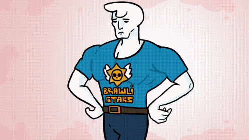Animated Giga Chad Muart Murat flexing muscles while wearing a Brawl Stars t-shirt.