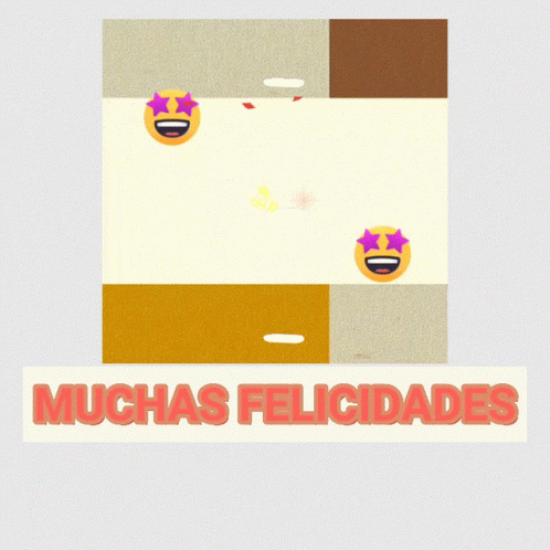Animated celebration with 'Muchas Felicidades' text, star-eyed emojis, and heart effects, perfect for congratulating a champion.