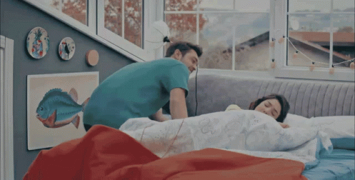 Furkan Andıç wakes up Aybüke Pusat in a tender morning scene from 'Her Yerde Sen'.