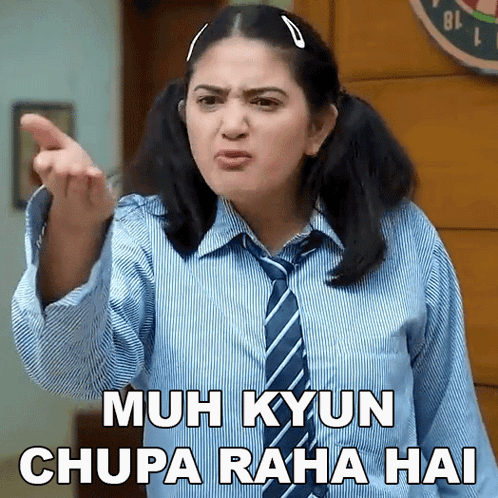 Sibbu Giri, a girl in a school uniform, makes a funny face and asks 'Why are you hiding your face?'